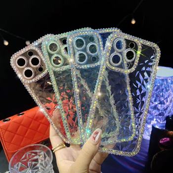 Moda de lujo Bling Diamond a prueba de golpes mujer funda de teléfono móvil bolsas Fundas accesorios 2024 para Iphone 14 13 15 12